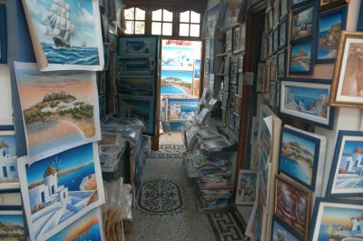 Galerie in Lindos ... die Bilder vor grellem Licht geschützt.